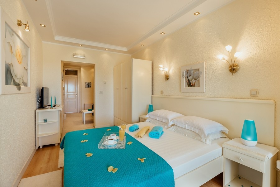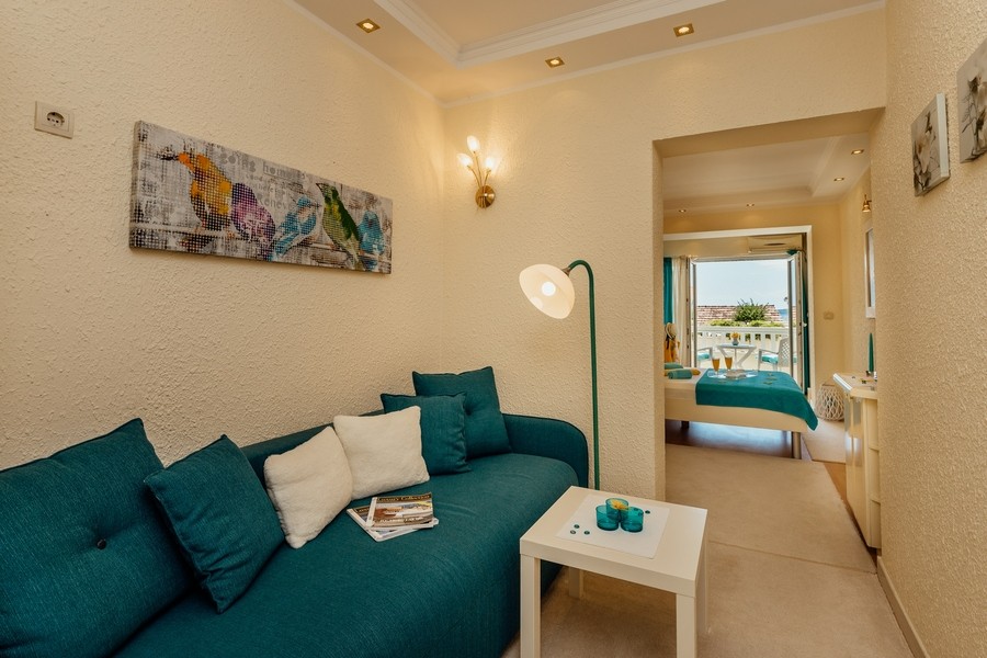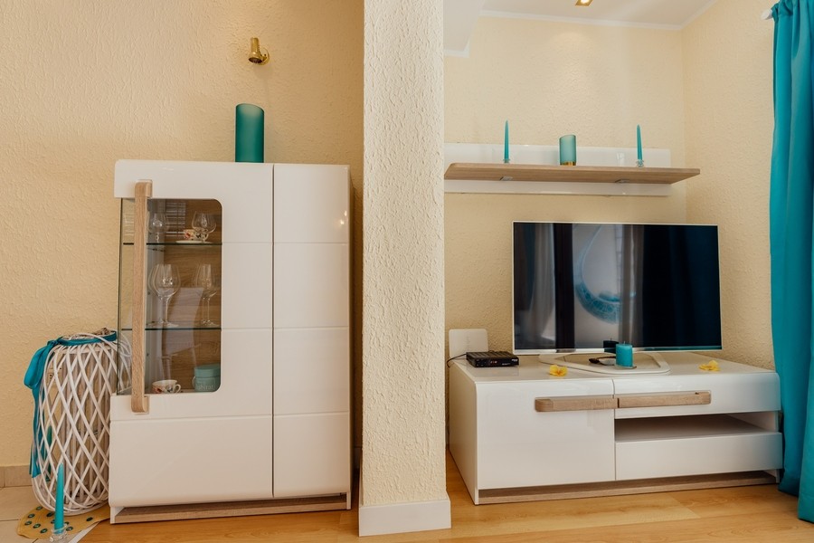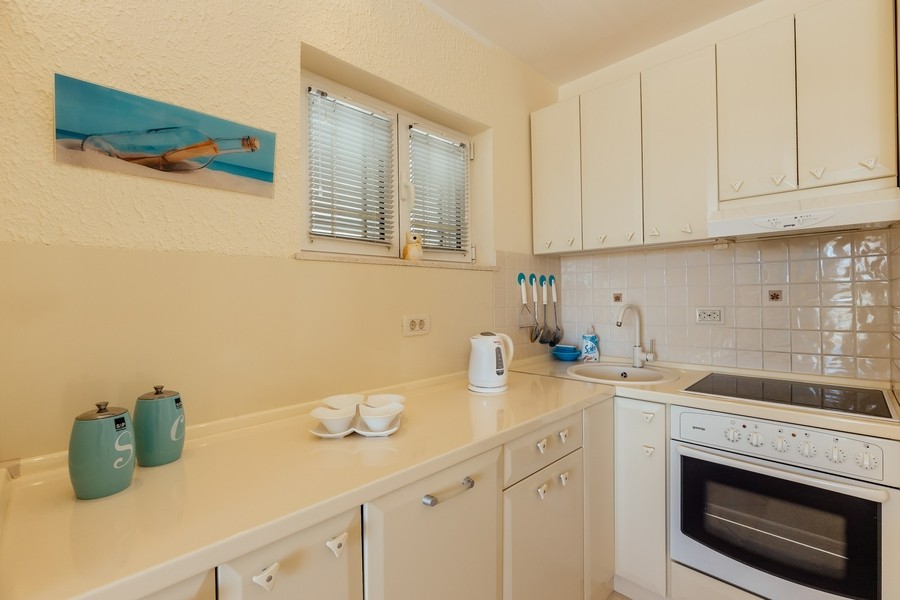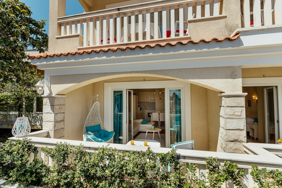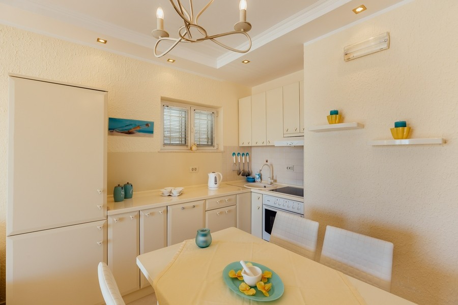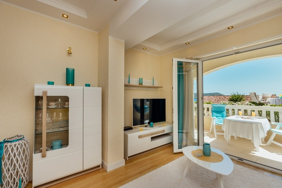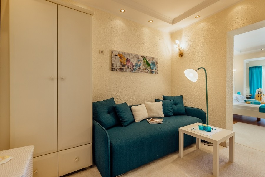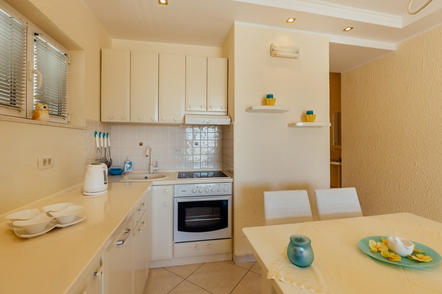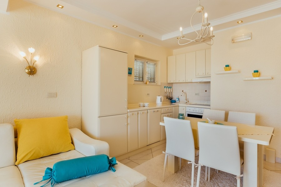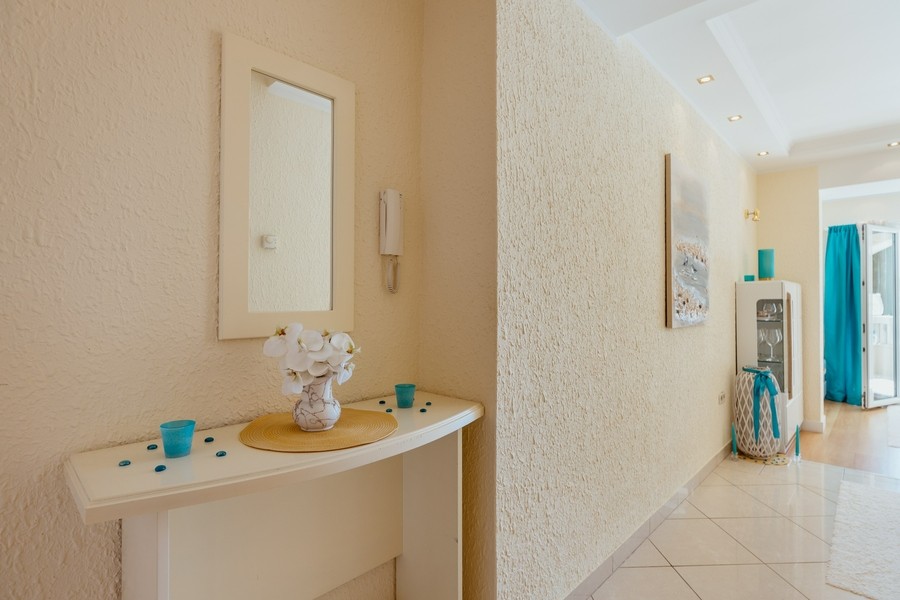 Prostran apartman savršen za porodicu ili prijatelje. Apartman se sastoji iz dvije spavaće sobe, jedna ima svoje kupatilo i sofu na izvlačenje, kuhinje koja je u potpunosti opremljena sa trpezarijom, dnevnog boravka, još jednog kupatila i 2 terase.
