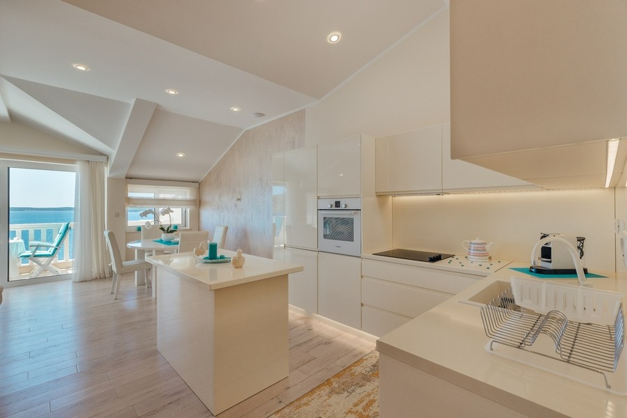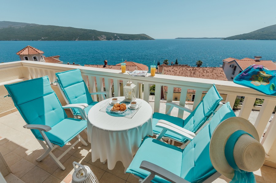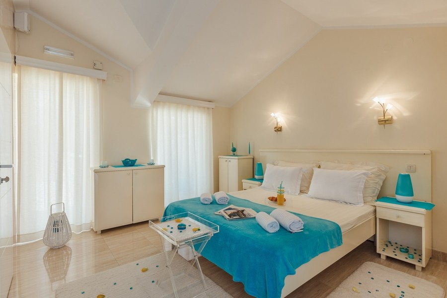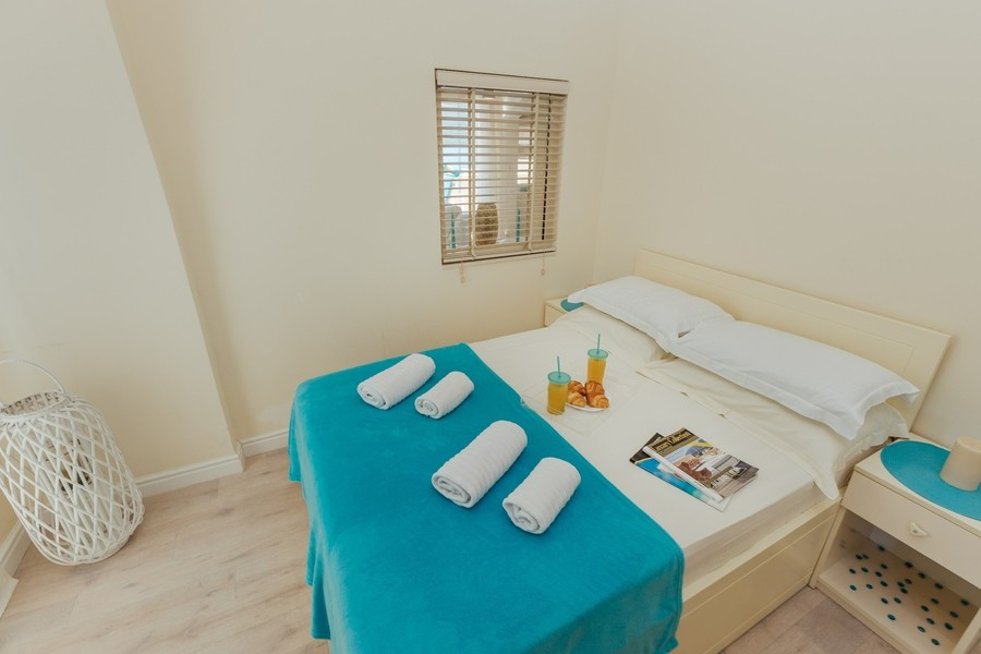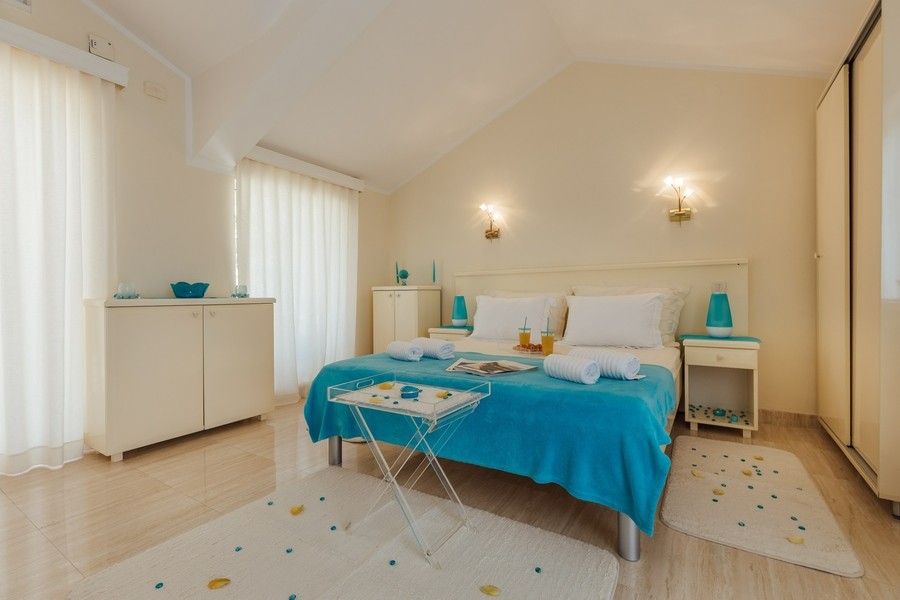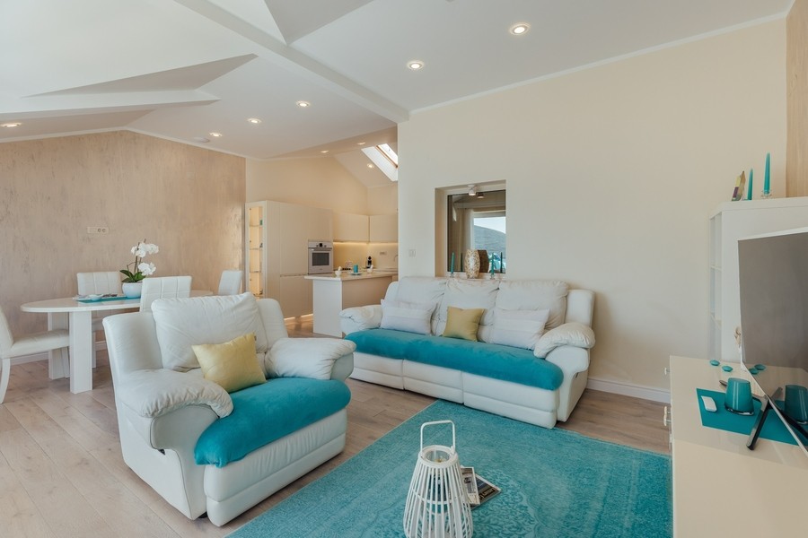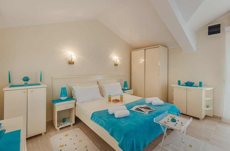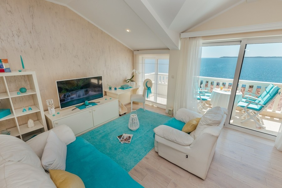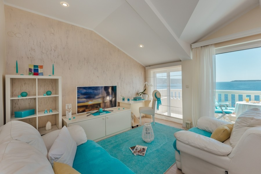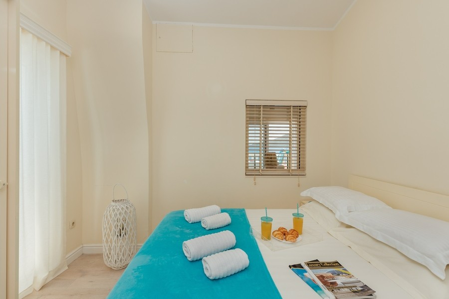Prostran apartman sa predivnim pogledom na more. Apartman se sastoji iz dvije spavaće sobe, jedna ima svoje kupatilo, a druga svoj toalet, kuhinje koja je u potpunosti opremljena sa trpezarijom, dnevnog boravka, još jednog kupatila i terase. Idealan je za porodicu, grupu prijatelja, a može i da bude komforan romantični stan za dvoje.