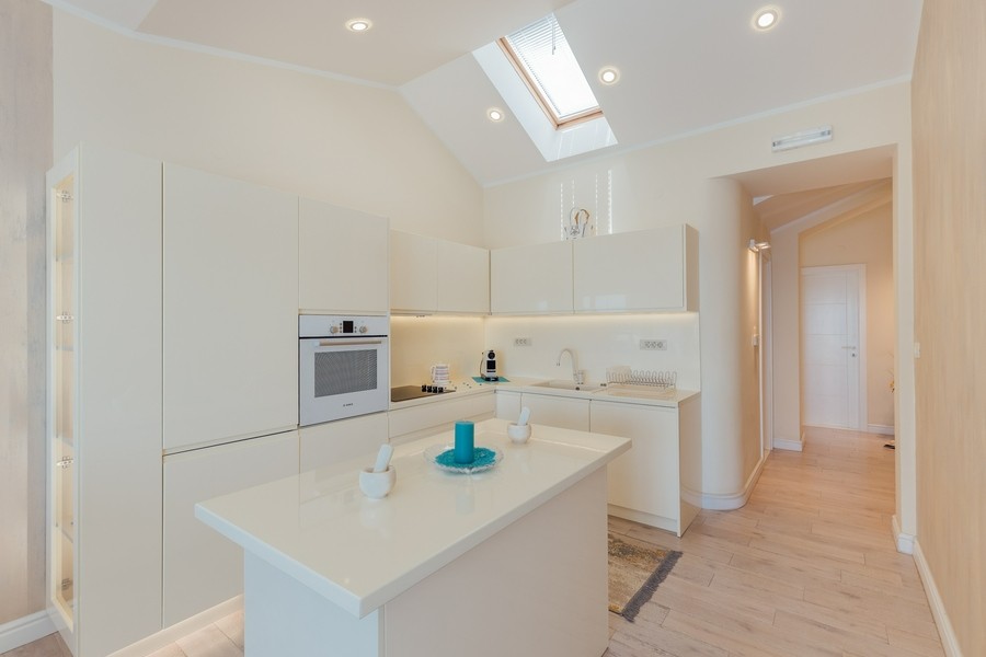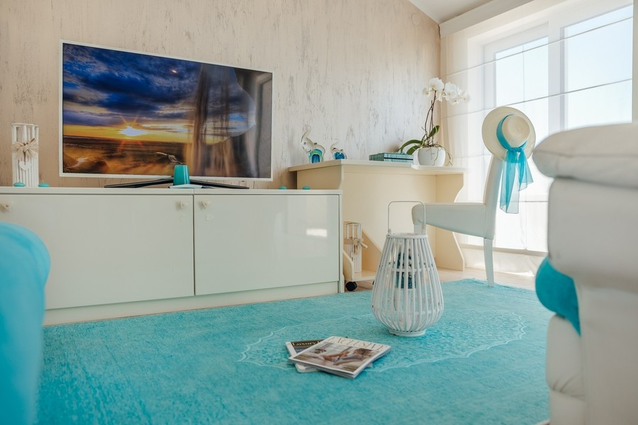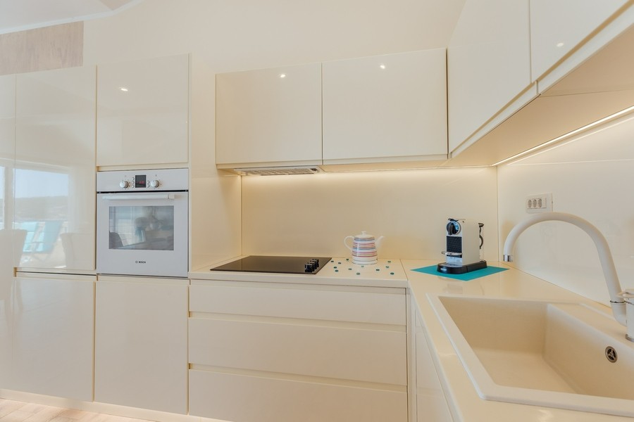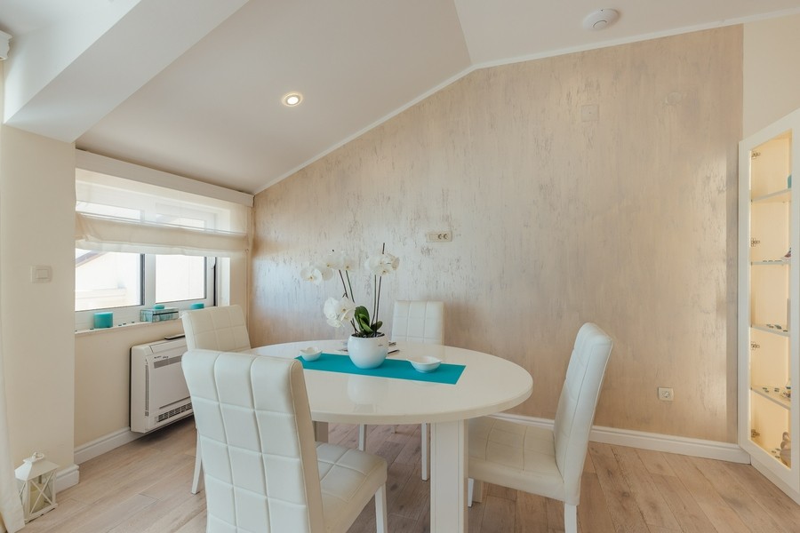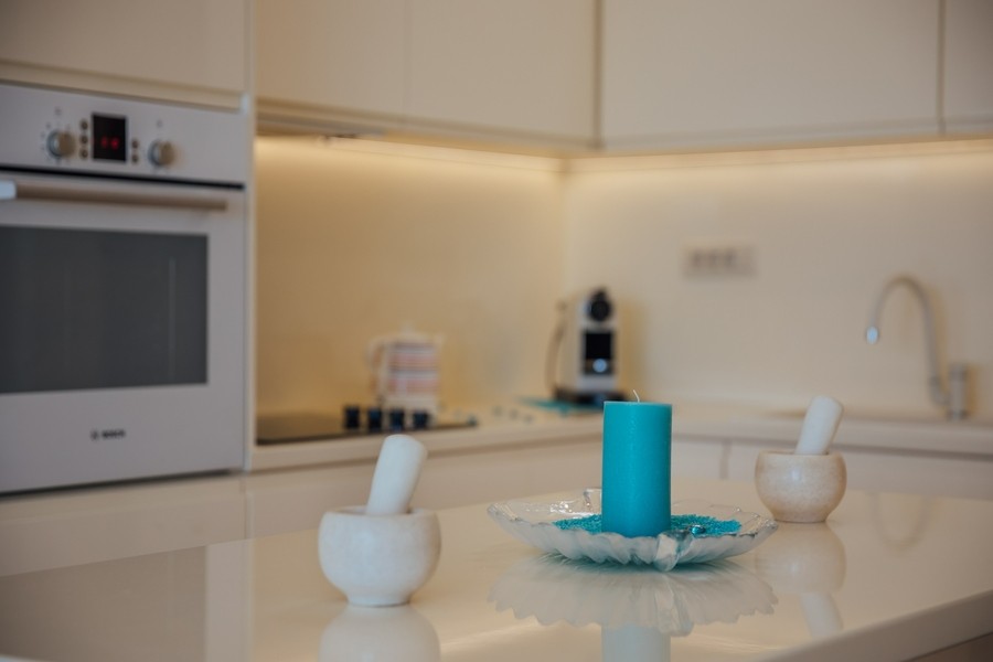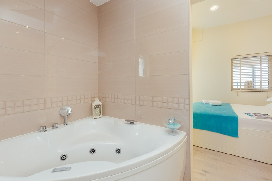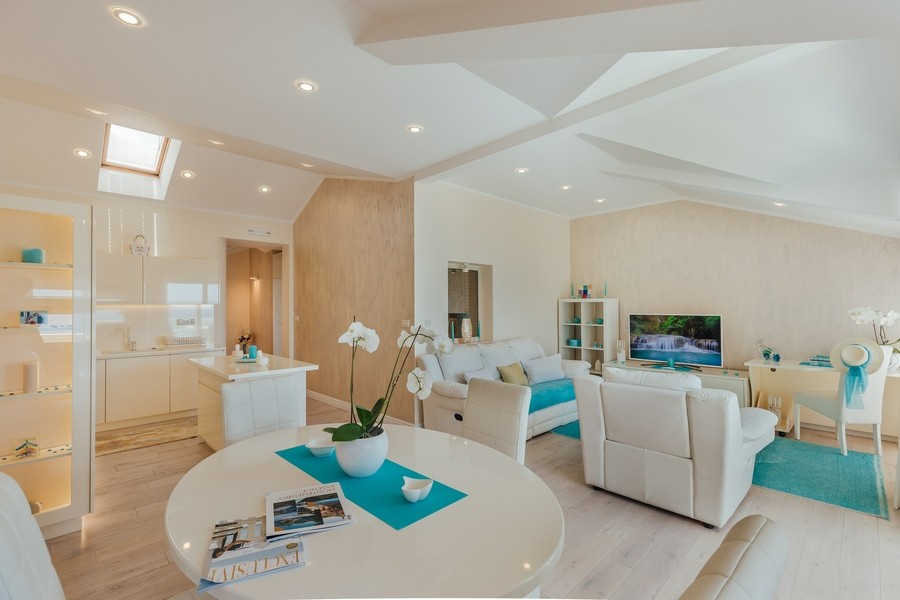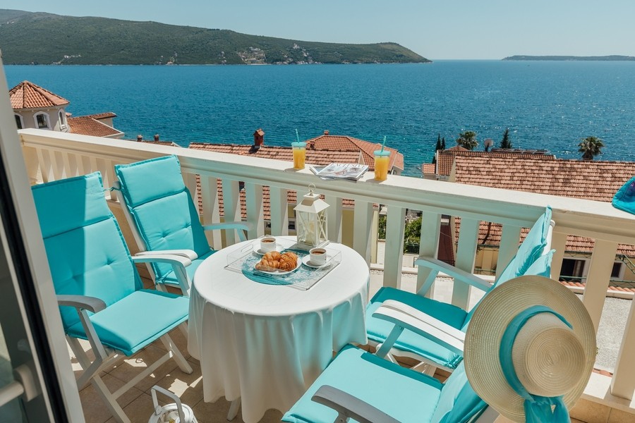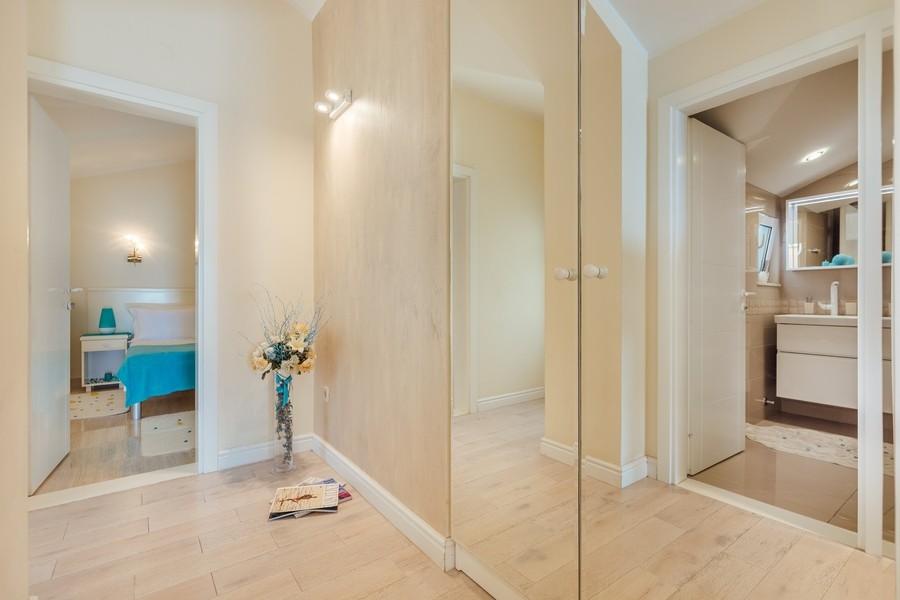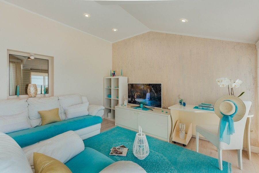 Prostran apartman sa predivnim pogledom na more. Apartman se sastoji iz dvije spavaće sobe, jedna ima svoje kupatilo, a druga svoj toalet, kuhinje koja je u potpunosti opremljena sa trpezarijom, dnevnog boravka, još jednog kupatila i terase. Idealan je za porodicu, grupu prijatelja, a može i da bude komforan romantični stan za dvoje.